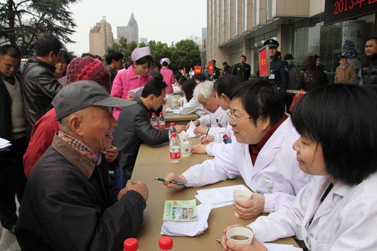 作为中华医学会肾脏病学分会主任委员单位,承办此次义诊活动的全军肾脏病研究所出动了200多名医护人员,精英荟萃、专家云集。其中,中华医学会肾脏病学分会青委会副主委、江苏省肾脏病学会副主委等博硕士导师和享受国务院特殊津贴的顶类专家就多达20名,全国政协委员、医院副院长、中国工程院刘志红院士更是专程从北京“两会”现场赶回。据统计,整个活动持续2个半小时,共为3000余名患者提供免费诊疗服务。