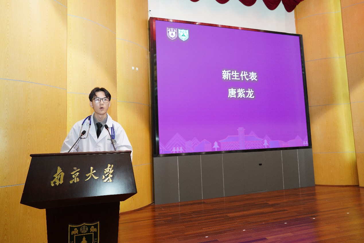 开元娱乐 在校学生代表、2018级本科生沈韬同学发言。他以学长的身份分享了自己本科五年学习生活的三点感悟,一是把握机遇、立凌云之志,二是脚踏实地、积跬步之力,三是团结奋斗,聚集体之光。他建议学弟学妹们认认真真学本领,踏踏实实做学问,希望他们做个勇敢、努力、温暖的医生。2023级新生代表唐紫龙同学发言。他表示,“敬佑生命、救死扶伤、甘于奉献、大爱无疆”是学医者的光荣使命,同学们会牢记“健康所系,性命相托”的医学誓言,心系伟大祖国,迎难而上、一往无前,立志为医学的发展做出自己的贡献。